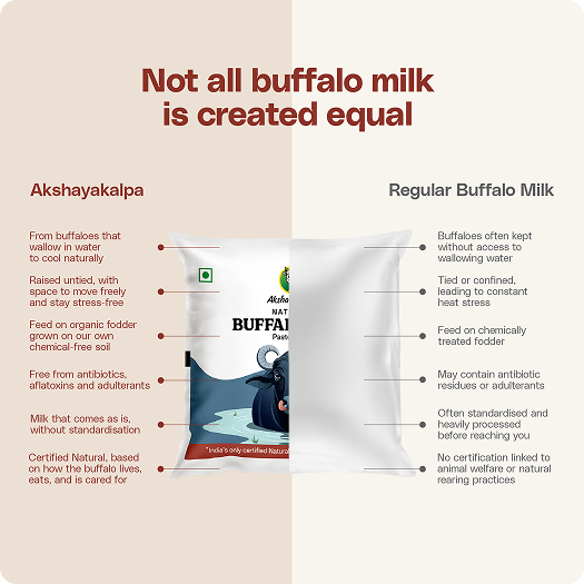 Every pack can be traced back to the exact farm and day it was produced. Our certification comes from independent third-party bodies. Every claim is verified, from how the buffalo lives to the quality of the milk.