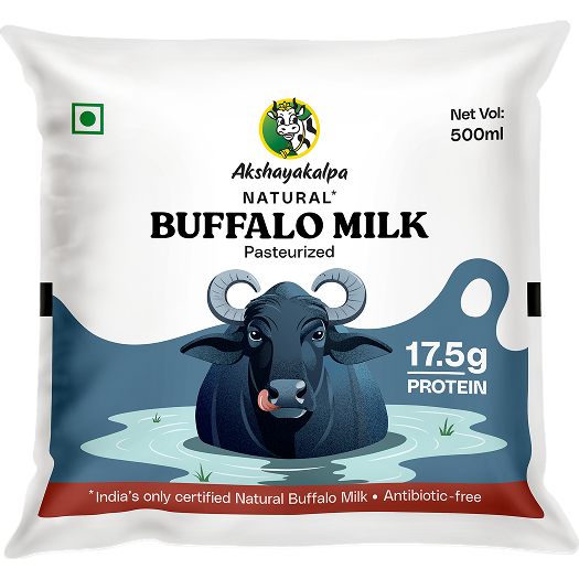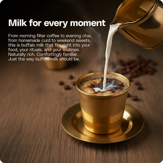 The milk is rich and creamy because the buffalo lived calmly, not because anything was added. The nutrients stay intact when the animal isn’t under constant stress. Comfort shows up in what the milk retains. There are no signs of heat stress or strain. Just milk in its natural, balanced state.