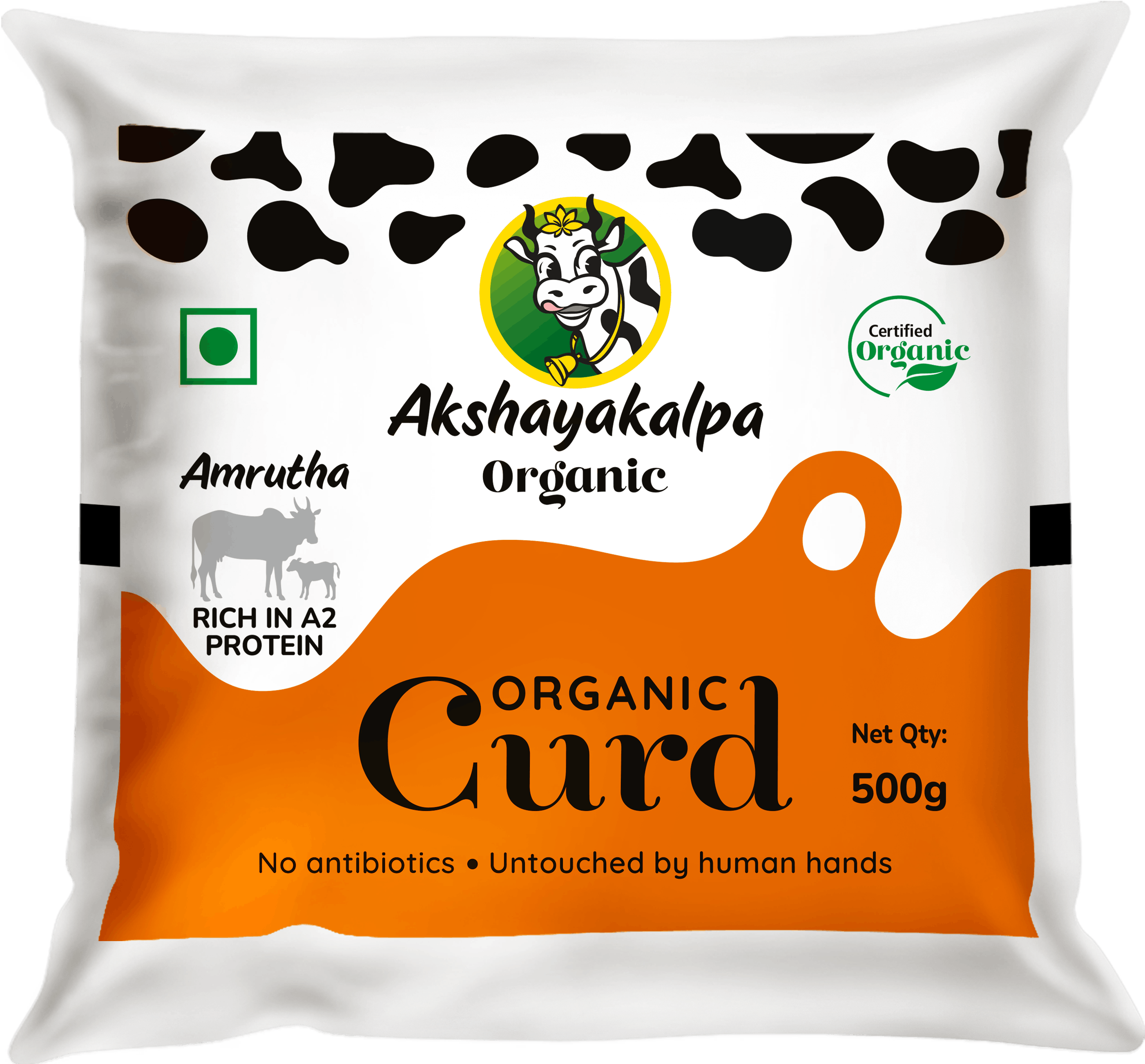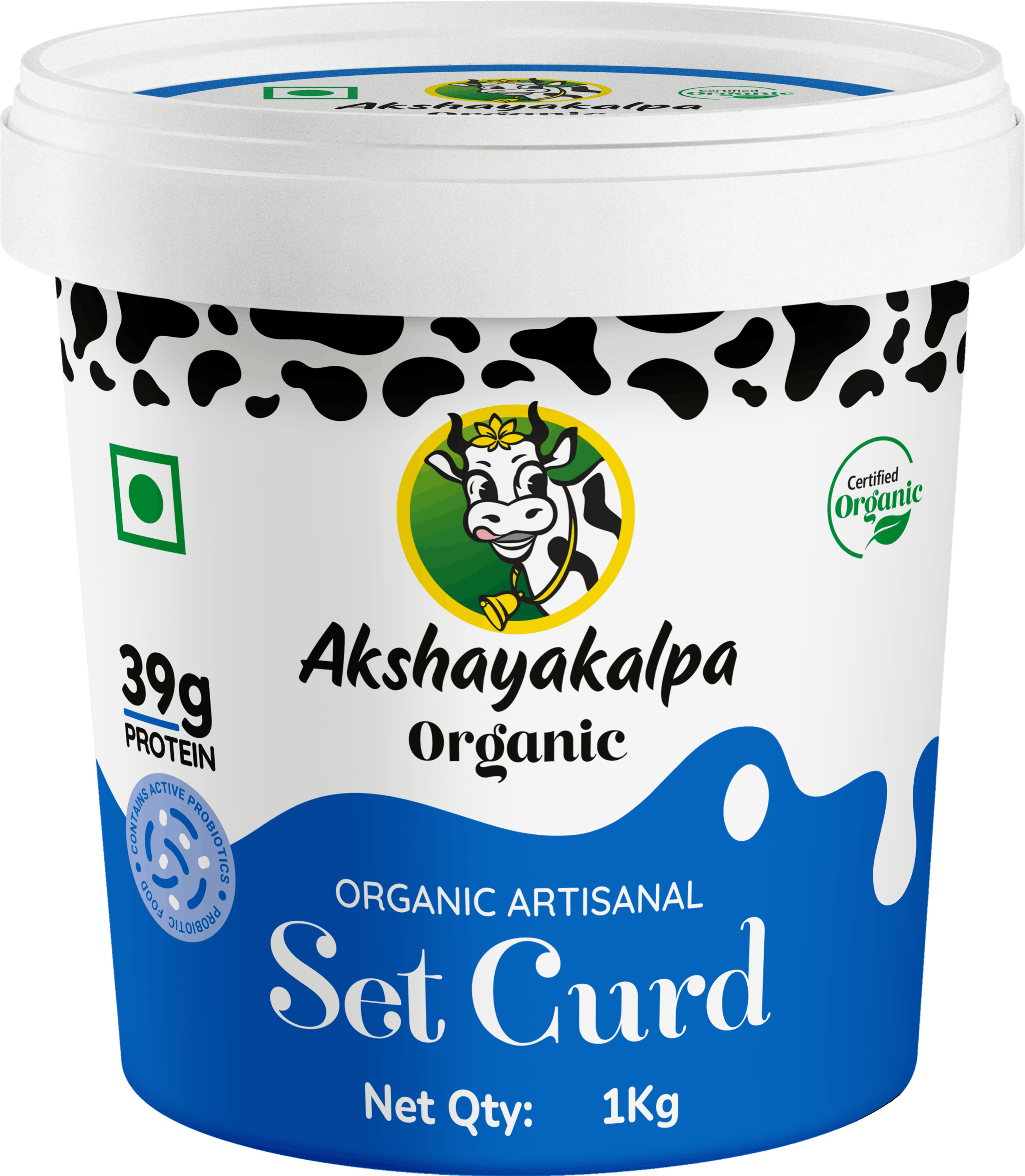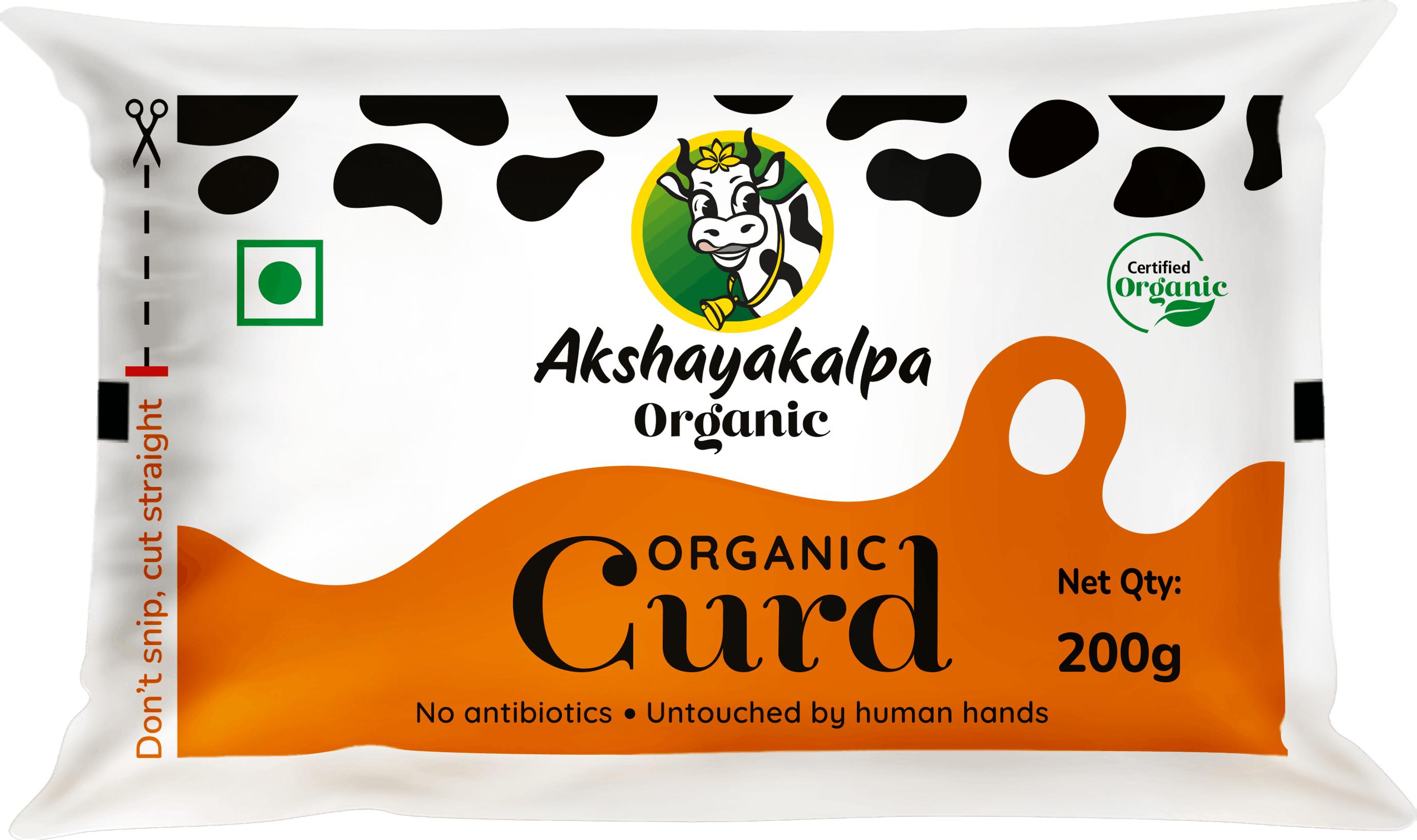 Akshayakalpa Probiotic curd is food for the soul! Crafted using organic milk cream from happy, healthy cows living on organic farms, its purity reflects in the exceptional taste and quality of our curd. True to the traditional art of setting the perfect curd, specially-curated cultures are added to organic milk and allowed to ferment naturally, in their own time – without the use of any synthetic additives, preservatives or enhancers.